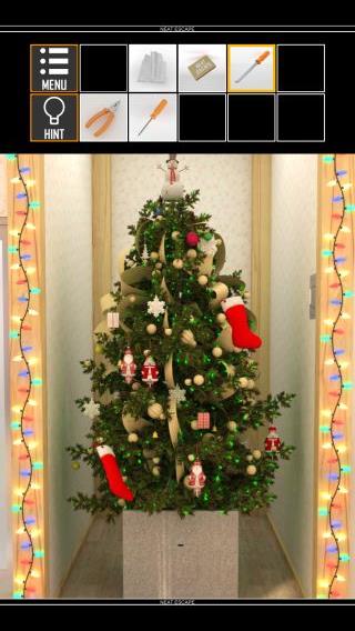 動いたクリスマスツリーの下から脱出。