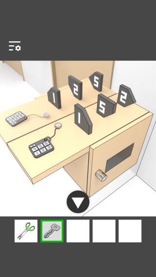左の棚を拡大して、「はさみ」を使って「リモコン」を入手。
