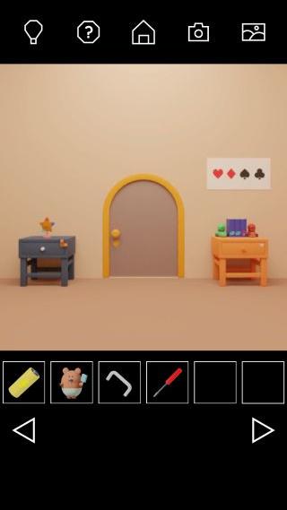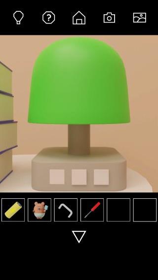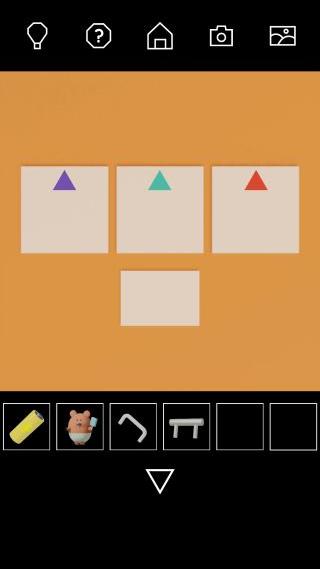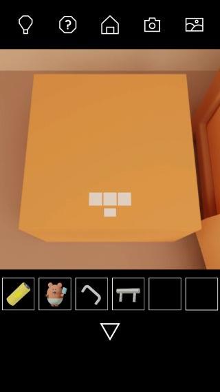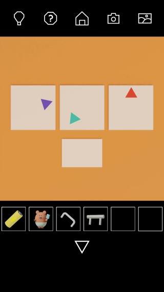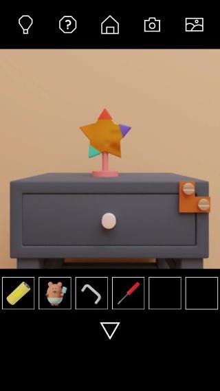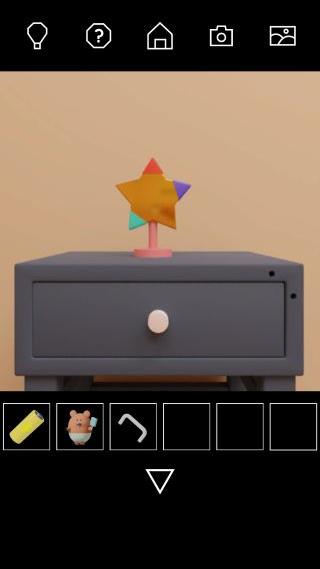 左の棚を拡大して、★のオブジェの3色の位置を確認。
