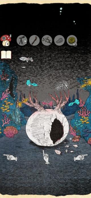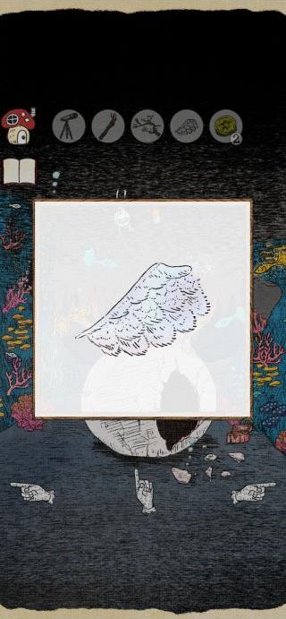 白い魚から「羽」を入手して、左の穴をタップしてキャラクターを移動させる。