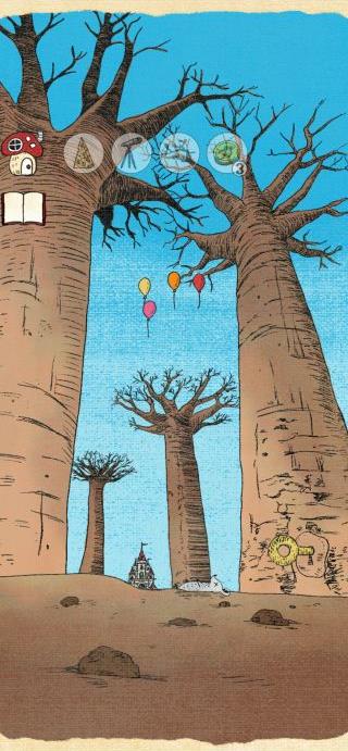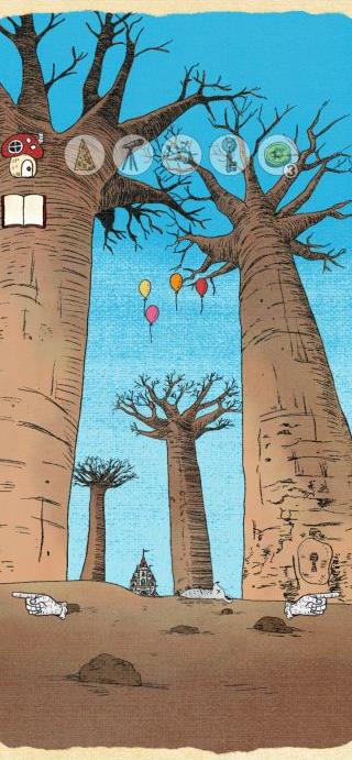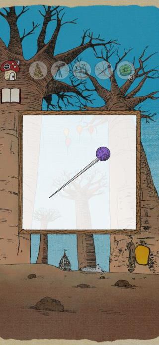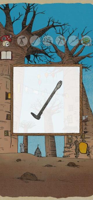 右の木の下の鍵穴に「カギ」を使って、「針」を入手。