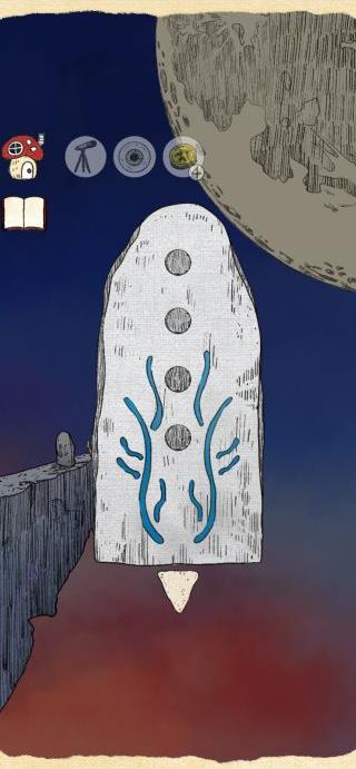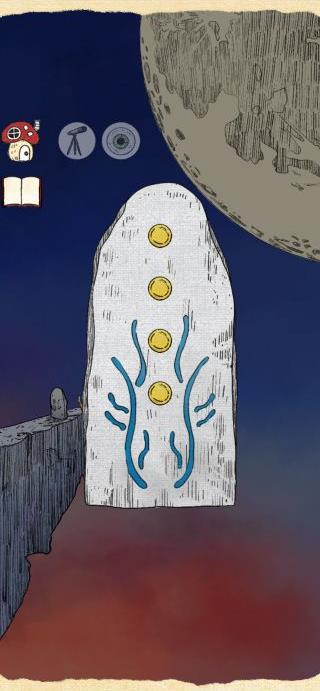 左の石碑を拡大して、3枚の「コイン」をはめる。