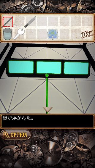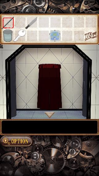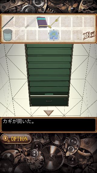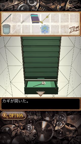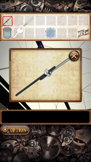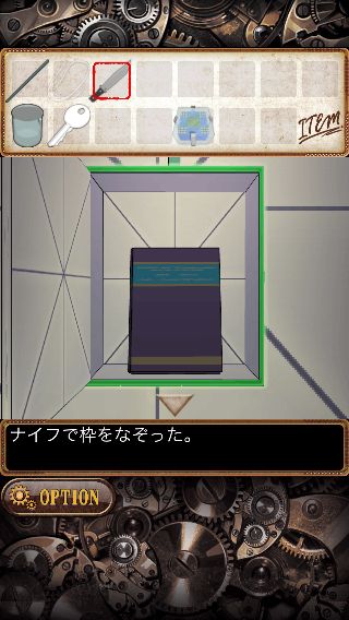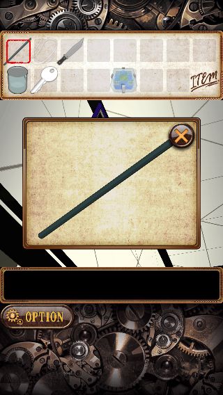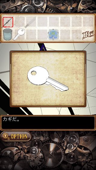 上の額を拡大して、ナイフ付きの「鉄の棒」を使って「カギ」を入手。