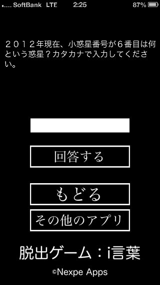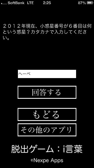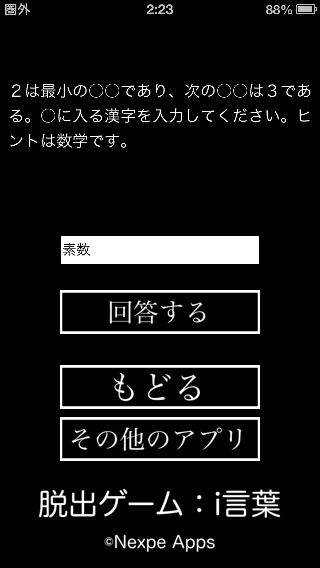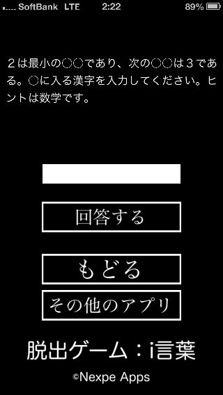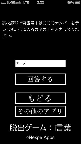 脱出ゲーム:i言葉 無料 0 評価する 送信する 001~010 1 『エース』 2 『素数』 3 『地球』 4 『ダイヤモンド』 5 『五輪』 6 『ヘーベ』 7 『N』 8 『センター』 9 『ナイン』 10 『エース』 001~010 011~020 021~025
