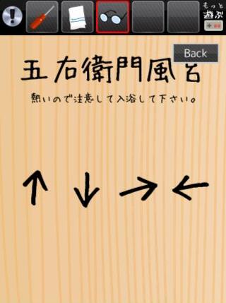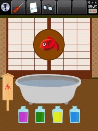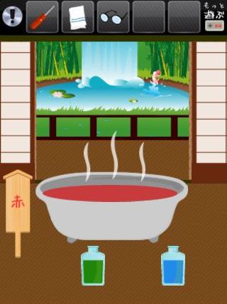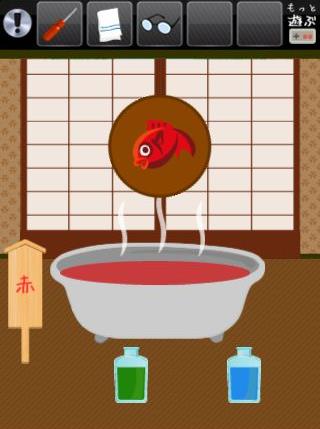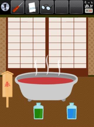脱出ゲーム温泉夏休み 無料 0 評価する 送信する STAGE 7~9 STAGE 7 左下の小さい文字を「メガネ」で確認する。 亀を拡大して、『上、下、右、左』の順でボタンを押す。 障子を開ける。 STAGE 8 『紫、黄色』のビンを浴槽に入れる。 障子を開ける。 STAGE 9 障子を拡大する。 6ヶ所に穴を開けて、右に移動。 棚を拡大して、『左、右、右』にする。 左に移動。 STAGE 1~4 STAGE 5~6 STAGE 7~9 STAGE 10~12 STAGE 13~15 STAGE 16~17 STAGE 18~19 STAGE 20~21 STAGE 22~24 STAGE 25~27 STAGE 28~29