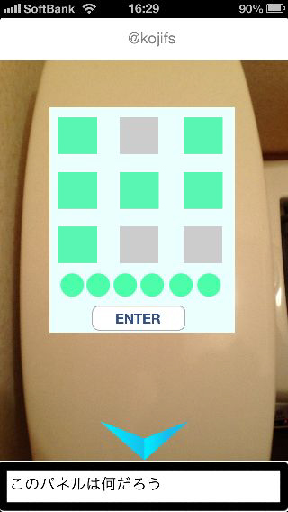 トイレタンクの上の装置を拡大して、先ほどの置物と同じ形でボタンを押していく。