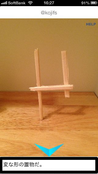 右の割り箸で作られた置物の形を覚えて、再び左に移動。