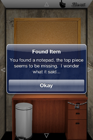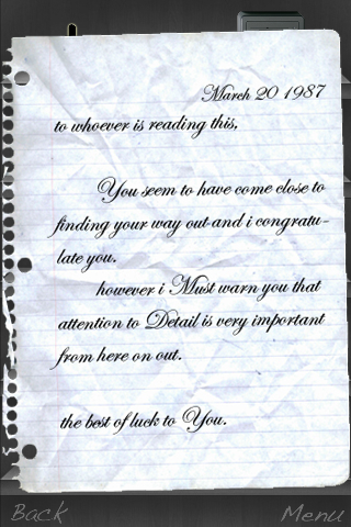 テーブルの上から「ノート」をゲット。一番上のページが破られている。