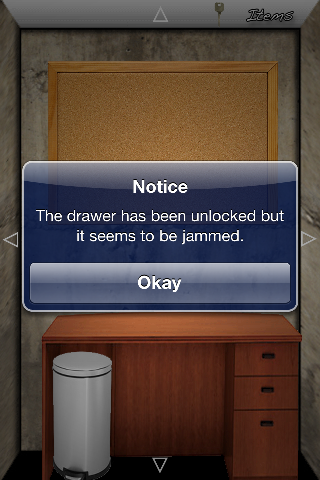 引き出しの錠を開けるが、何かひっかかって開かない。