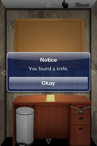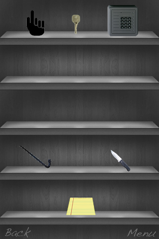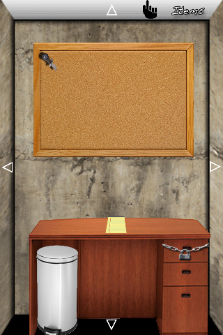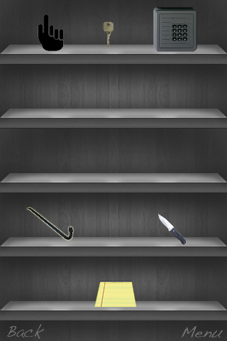 最初に下を見るとハッチがあり、開けると中から「バール」と「暗号入力装置」が手に入る。
