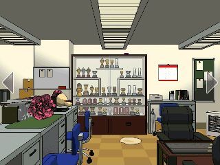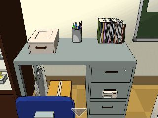 右の机の前へ。
