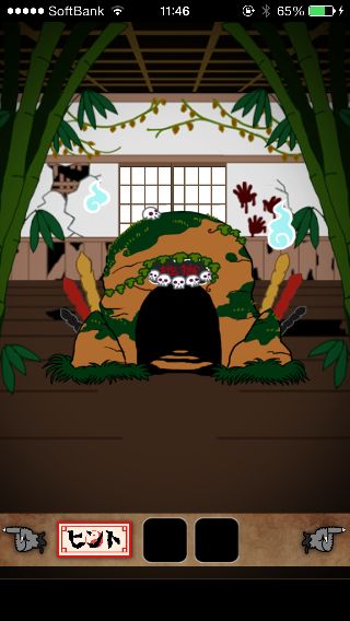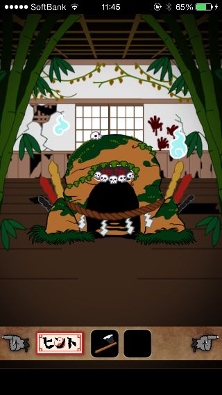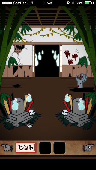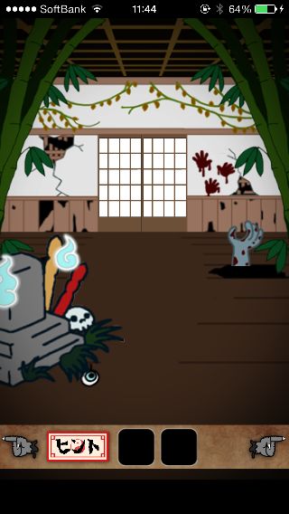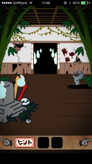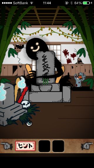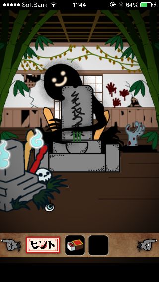 「マッチ」で墓の線香に火をつけて、扉をタップする。
