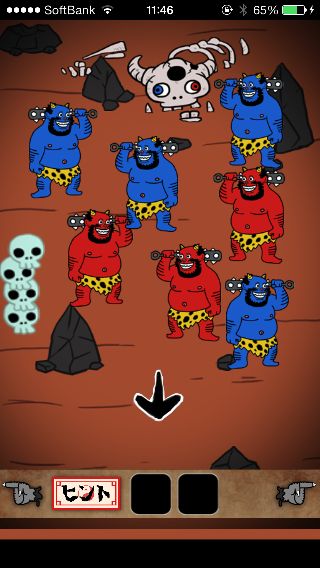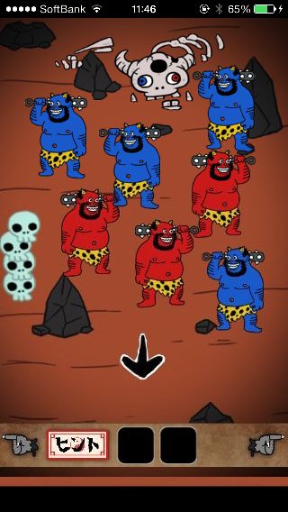 上の骸骨の目が『青:左、赤:右』になっているので、鬼の向きを合わせていく。