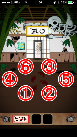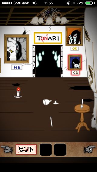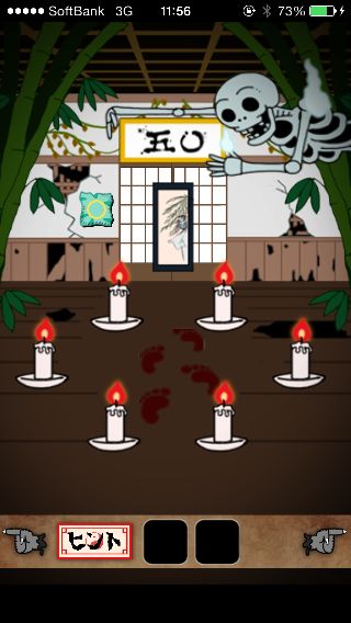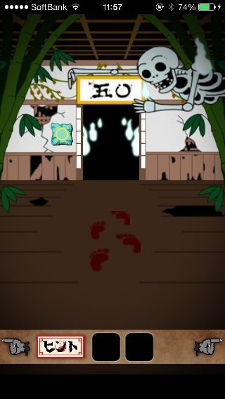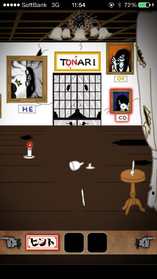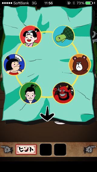 「巻物」には何も書かれていないので、お化けを何度かタップすると何かを落とす。