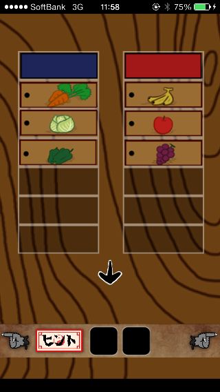右の看板を拡大して、野菜と果物に振り分けていく。