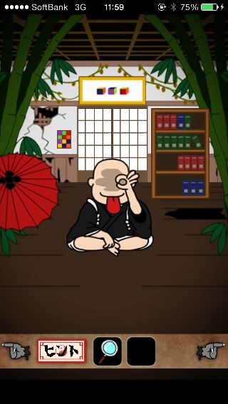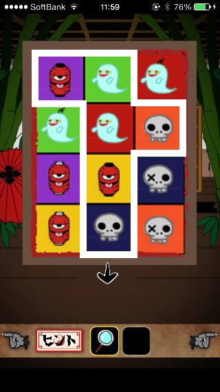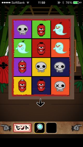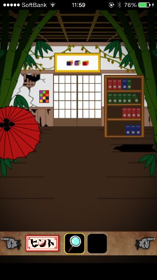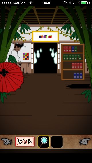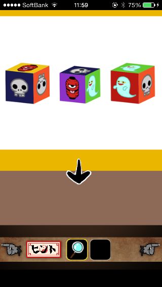扉の上に「虫眼鏡」を使うと、立方体の絵が書かれている。