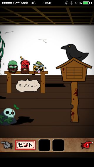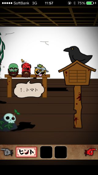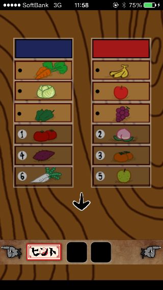 左の首をタップしていくと、『1.トマト、2.モモ、3.カキ、4.サツマイモ、5.ナシ、6.ダイコン』と表示される。