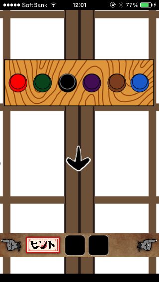 扉を拡大して、表示されたお化けの色の順でボタンを押していく。