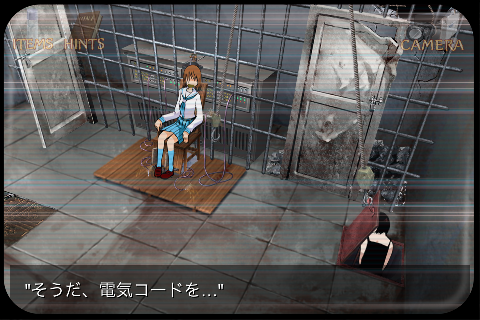 ショートしたコードから出ている火花を調べて彼女をタップ。『そうだ、電気コードを…』と出たら成功。