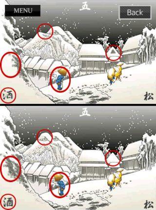 左右の置物を、絵の左下と右下の文字から『酒、松』に合わせる。