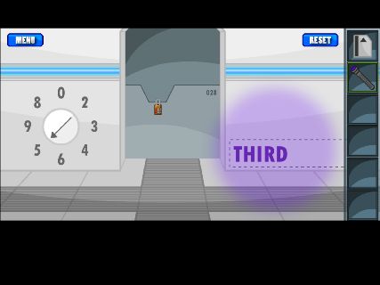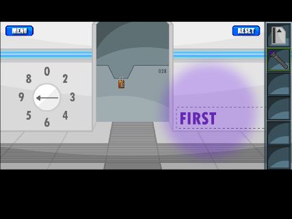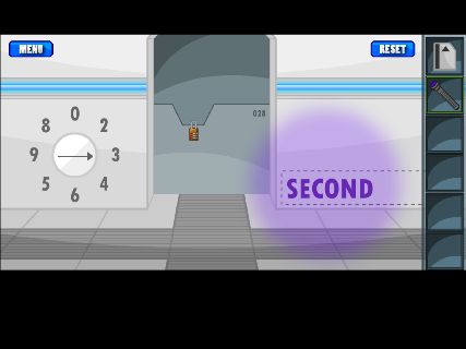 「ブラックライト」で右の壁を調べると、『SECOND』と書かれている。