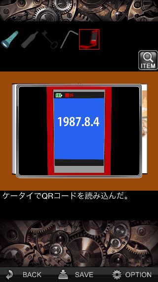 『8』が無いので、「ケータイ」に表示された日付から『8』を消すと、『1974』になる。