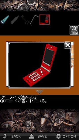 右下のQRコードを調べて、「ケータイ」を取り出す。