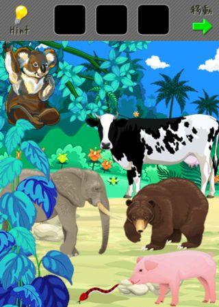 『ヘビ、ブタ、コアラ、ゾウ、ウシ、クマ』