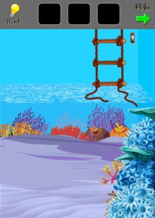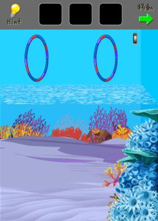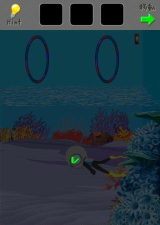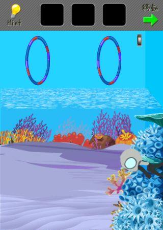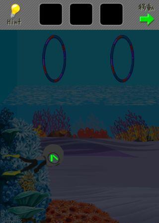 右のサンゴ礁をタップするとダイバーが現れるので、右上のスイッチで電気を消す。