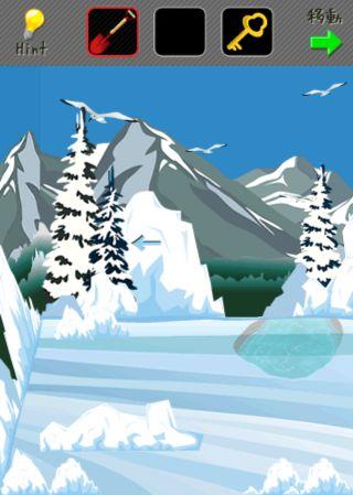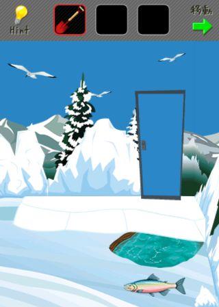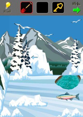 「シャベル」で水に張った氷を壊して、「魚」を入手。