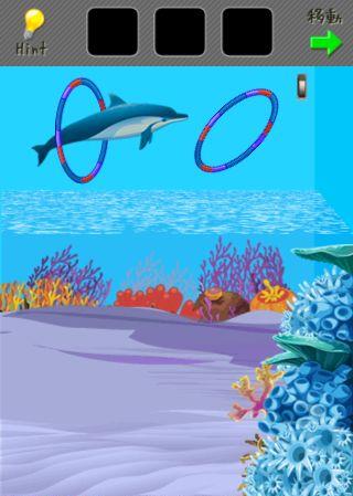 右側も向きを合わせたら、イルカがくぐってハシゴが現れる。