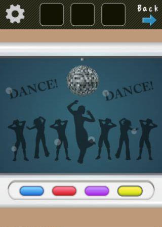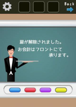 『赤、青、黄、紫』の順でボタンを押して、右に移動。