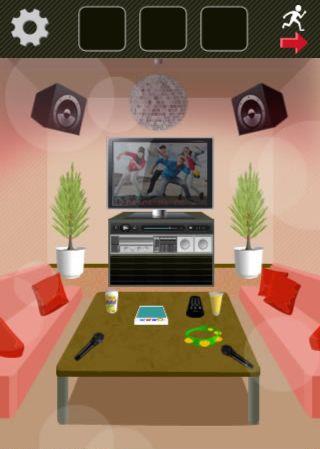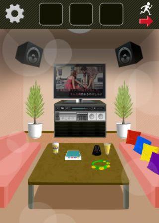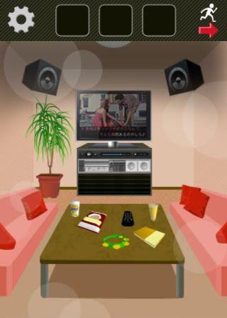 右のクッションの色の並びを確認して、テーブルの上のリモコンを拡大。