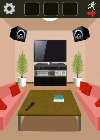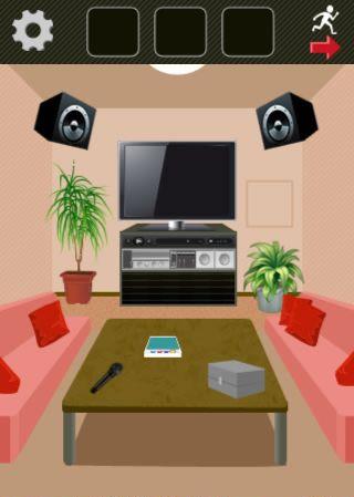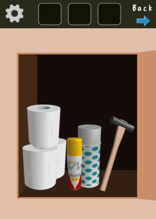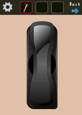 テーブルの上の箱を「ハンマー」で壊して、ボタンを押す。