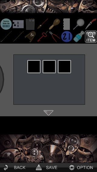 前の部屋に戻り、反対側に移動して左の緑の箱の前へ。