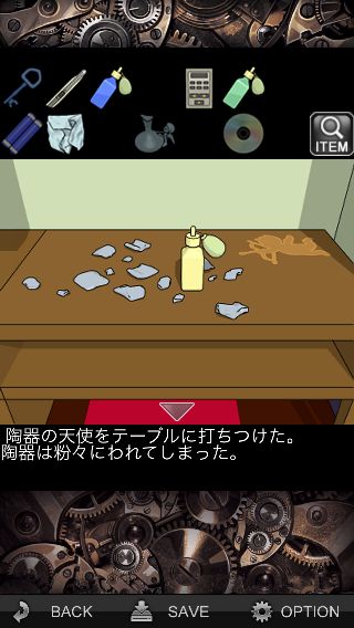 テーブルの上で「陶器の天使」を割って、「黄色い瓶」を入手。
