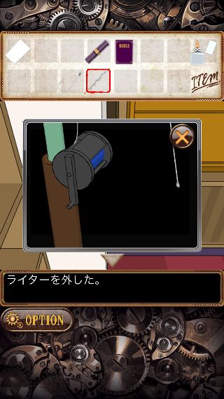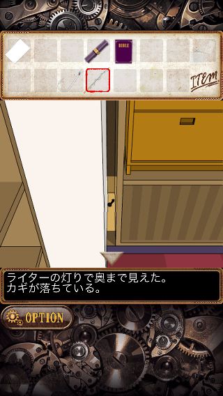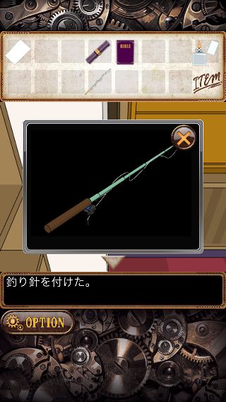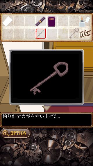 「釣り針」を付けて、隙間から「カギ」を入手。