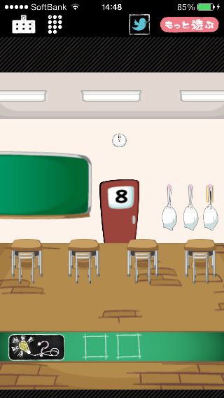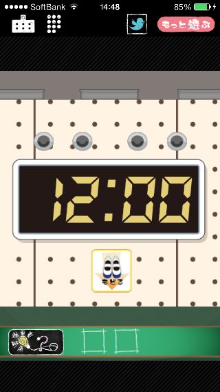 給食をヒントに『12:00』に合わせて、右下の機械をタップしてチャイムを鳴らす。