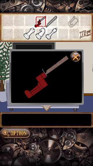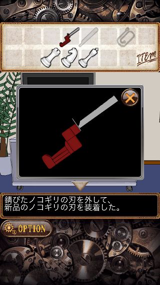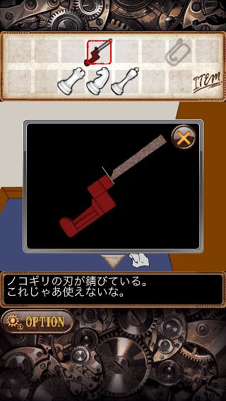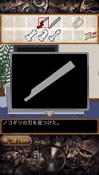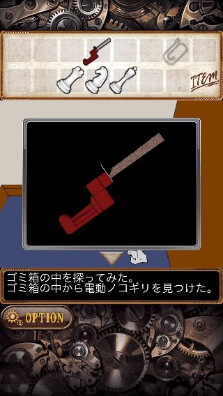 ゴミ箱の中から「電動ノコギリ」を入手して、刃が錆び付いているのを確認。