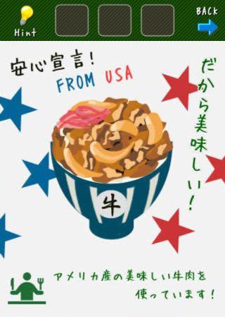 上のメニューを拡大して、牛肉がアメリカ産なのを確認。