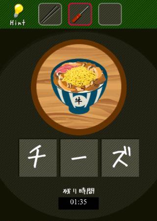 しりとりで『ドア→アイス→寿司→シカ→カギ→牛丼』となるようにする。