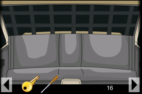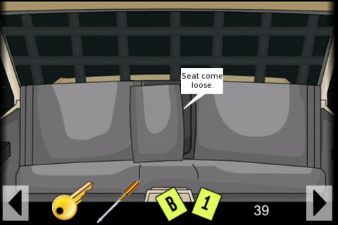 ESCAPE THE CAR - FREE 無料 0 評価する 送信する 攻略その1 運転席からスタート。 ハンドルの下で「カギ」を入手。 右のダッシュボードを調べる。 「カギ」で開けて、中から「ドライバー」をゲット。 後部座席に移動。 左の座席下をタップする。 右下をめくった所で「Bのカード」をゲット。 次に右の座席下をタップして、左下をめくった所で「1のカード」をゲット。 後部座席の真ん中をタップすると、はずれる。 トランクに入り、「7のカード」をゲット。 攻略その1 攻略その2