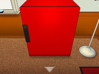 赤い冷蔵庫の前へ。