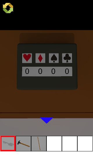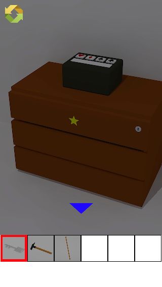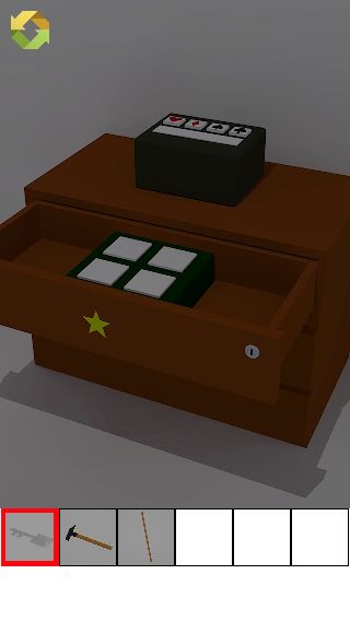 「箱」を入手して、詳細画面で「ハンマー」を使って「カギ」を入手。