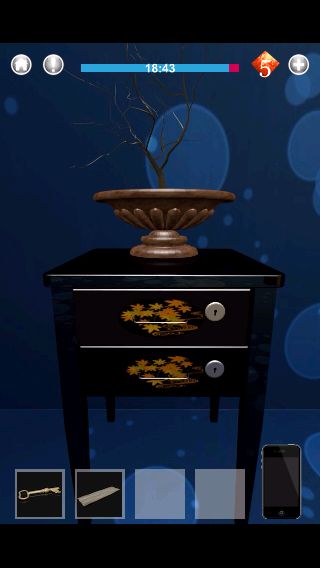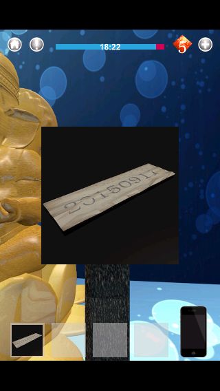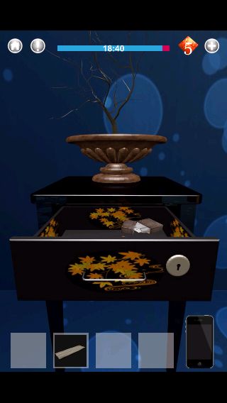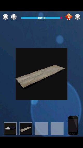 MysteryRoom1 無料 0 評価する 送信する 攻略その1 スタートしたら、反対側に移動。 死体を拡大して、「ナイフ」を入手。 壁から「板」を入手。 左に移動して、右の窓へ。 「ナイフ」で窓を割って「カギ」を入手。 反対側に移動して、棚の前へ。 上の引き出しに「カギ」を使って、「ライター」を入手。 右に移動して、ロウソクを拡大。 「ライター」で火をつけて、「板」を使うと数字が現れる。 「ロウソク」を取って、半分に割る。 攻略その1 攻略その2 攻略その3