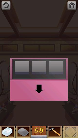 左の下向きの矢印の箱を拡大して、「石鹸」、「鉄の塊」、「ハンマー」を置く。