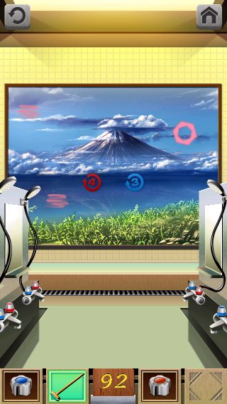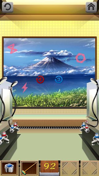 「赤い蛇口」を入手して、壁画のマークに「ブラシ」を使う。