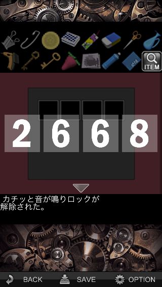 壁の装置に『From Her→フロムハー→フ(2)ロ(6)ム(6)ハー(8)』に合わせる。