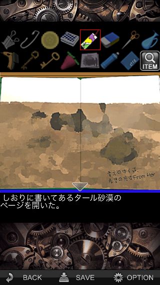 「しおり」を選択した状態で開いて、右下の文章を確認。
