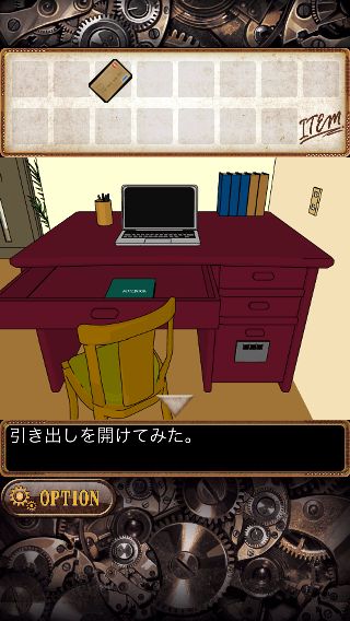 「カード」を入手して、右の机の前へ。